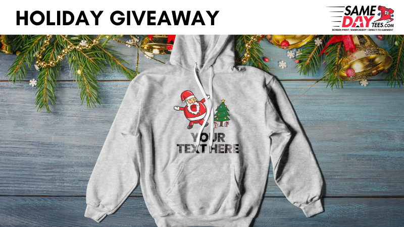 Enter the Same Day Tees Holiday Giveaway for your chance to win a run of custom designed t-shirts, hoodies, hats, polos, and more. Perfect for family sweaters, family reunions, holiday corporate events, or your rock band’s merch tees. Whatever your printing design, Same Day Tees is here to help. Enter our holiday giveaway today.